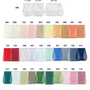 | Cores | 000-Preto, 006-Cinza Prata, 009-Branco, 089-Pérola, 106-Rosa Flamingo, 150-Meio Rosa, 176-Malva, 183-Alfazema, 210-Marinho, 249-Azul Celeste, 258-Azul Bebé, 403-Verde Azevinho, 430-Azul Nascente, 433-Verde Bandeira, 539-Verde Sêco Claro, 575-Verde Sêco, 629-Amarelo Cera, 638-Amarelo Claro, 692-Laranja Torrado, 702-Rosa Suave, 704-Salmão, 717-Rosa Ballet, 722-Vermelho Peónia, 752-Uva, 779-Rosa Velho, 795-Framboesa, 869-Marfim, 875-Camel, 889-Castanho Outono, 932-Canela, 961-Chocolate |